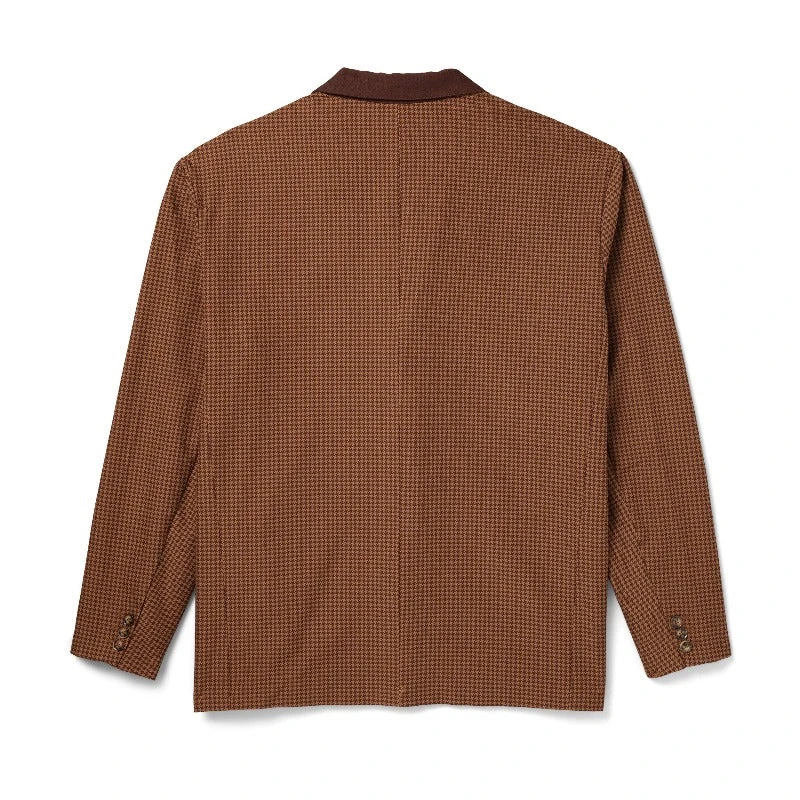 Introducing our Men’s Houndstooth Blazer—a fusion of timeless elegance and vintage flair designed to command attention. Featuring a classic brown collared lapel adorned with a silver Rabbit head pin, this blazer exudes sophistication and style.