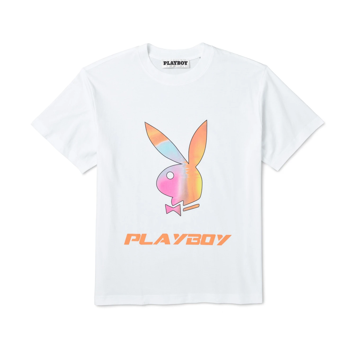 Introducing the Men’s Spectrum T-Shirt by Playboy—a dazzling embodiment of style and comfort. With its gradient bunny graphic at the front, this tee offers a bold finishing touch that captures gazes and sets the mood.