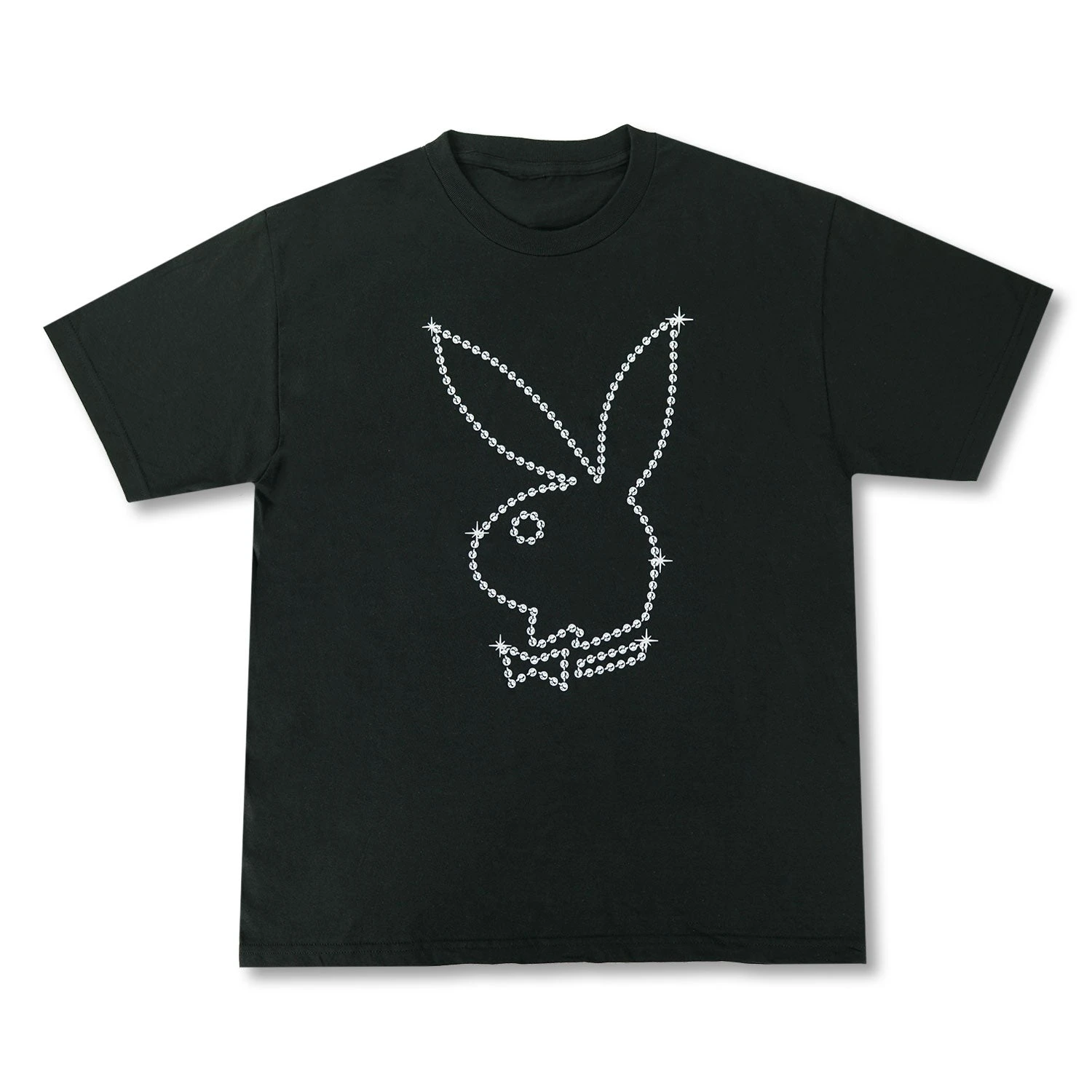 Step into a world where fashion dares to be different with the Playboy Rabbit Head Beads Black Tee. This isn’t merely clothing; it’s a statement piece adorned with unique beads shirt detailing, crafted for those who live boldly. Elevate your wardrobe with a tee that combines the iconic Playboy spirit with a touch of the extraordinary.