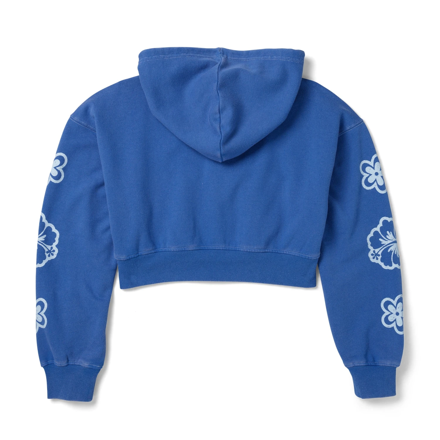 This ultra-cool cropped hoodie features a full zipper front closure, a drawstring hood, long sleeves, side pockets, custom Playboy graphics throughout, and ribbed cuffs and hem.